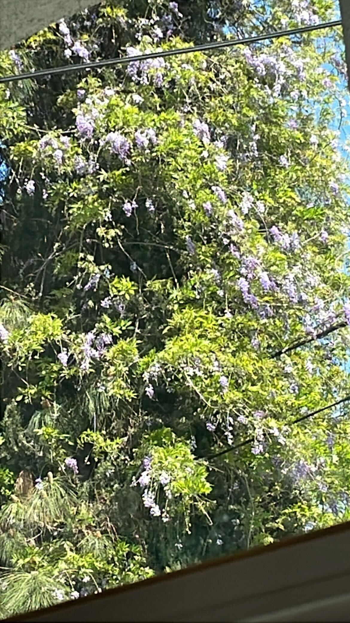 i came back to LA to be greeted by a chokehold of wisteria. the up and down stroke of purple had me mistaken the pine as a flowering tree. it couldn’t be a jaracanda…